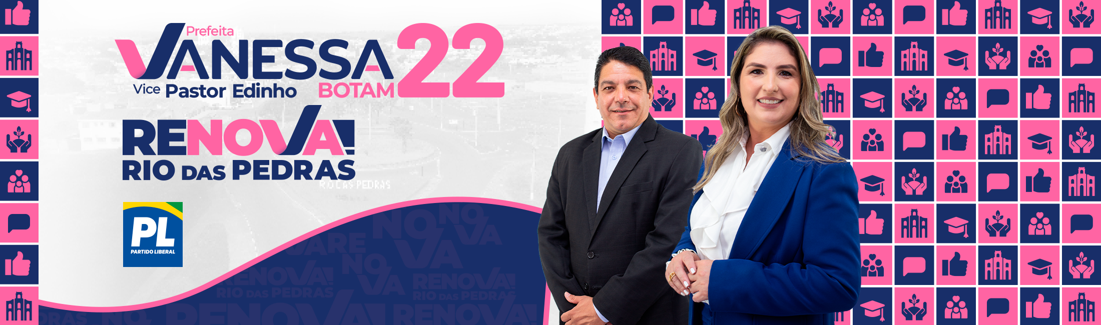 Queridos cidadãos de Rio das Pedras, é hora de renovarmos nossa cidade com ideias novas e uma gestão comprometida com o progresso. Juntos, podemos construir um futuro melhor, com mais oportunidades para todos. Meu compromisso é com o desenvolvimento sustentável, a melhoria dos serviços públicos e a criação de um ambiente mais seguro e acolhedor para nossas famílias. Vamos fazer de Rio das Pedras um lugar de orgulho e realização para todos nós!